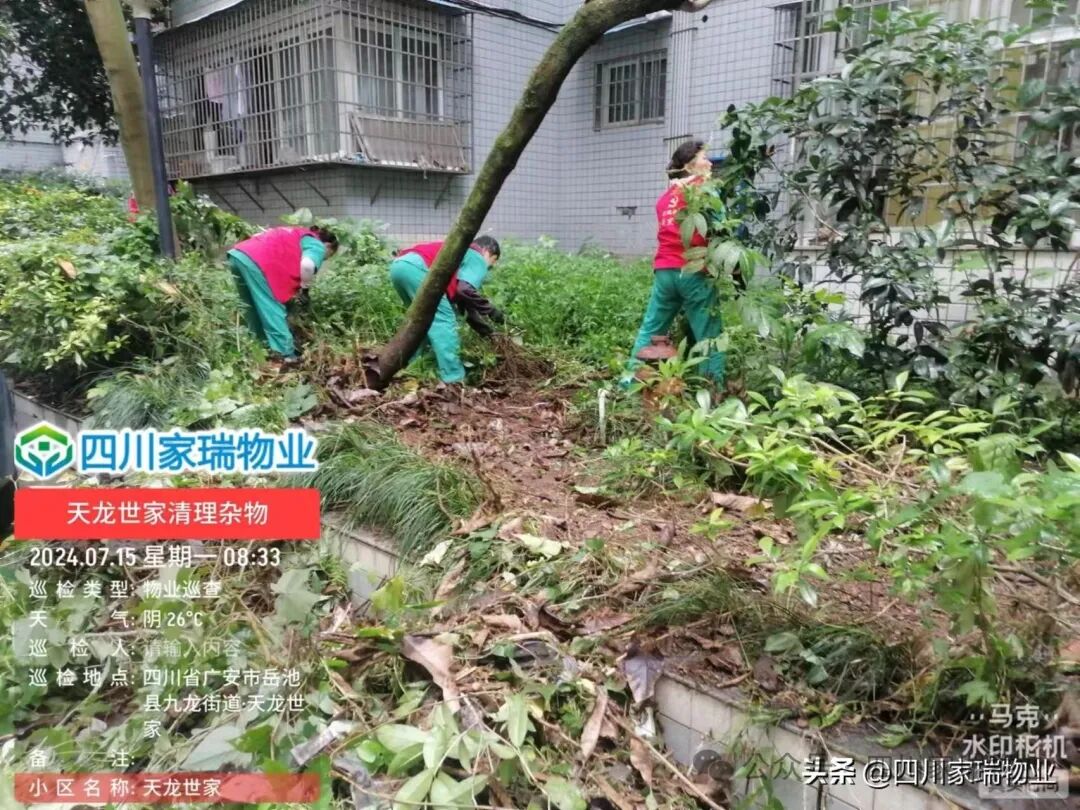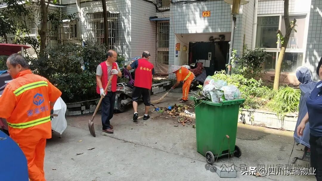 为了全面提升“天龙世家”小区的环境质量,给居民们营造一个更加整洁、舒适的居住环境。2024年7月15日,四川家瑞物业党支部成立了以公司副总经理为队长的党员突击队,他们身先士卒,发挥党员的先锋模范作用,不怕脏、不怕累,全身心地投入到小区环境整治工作中。