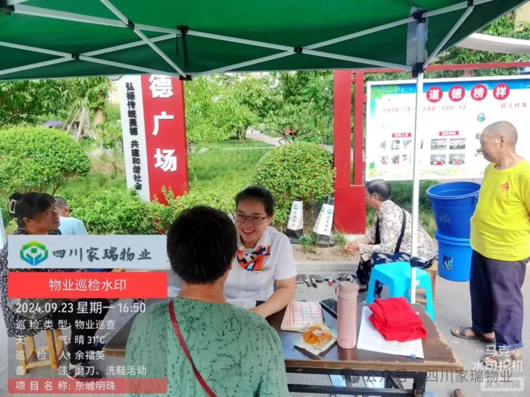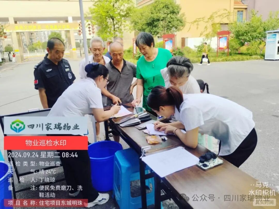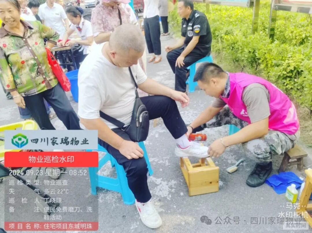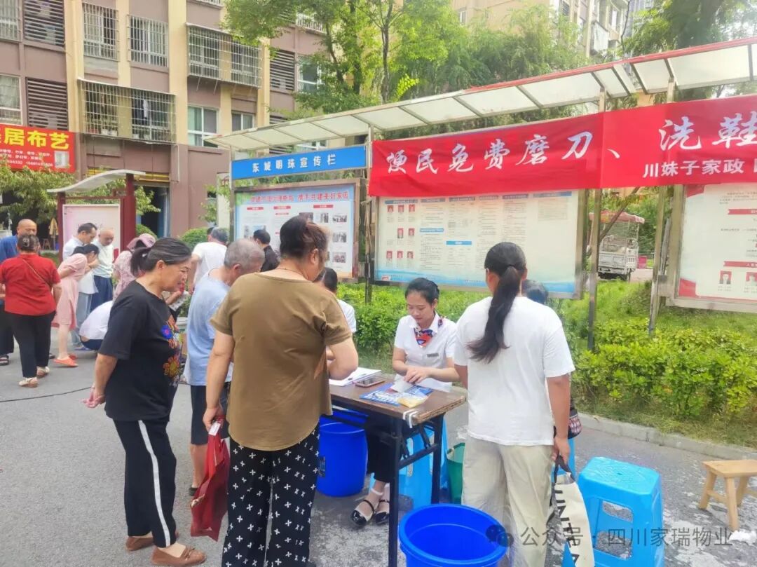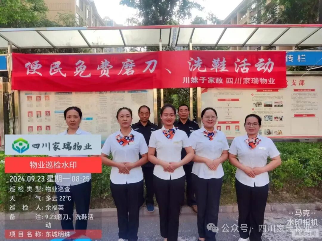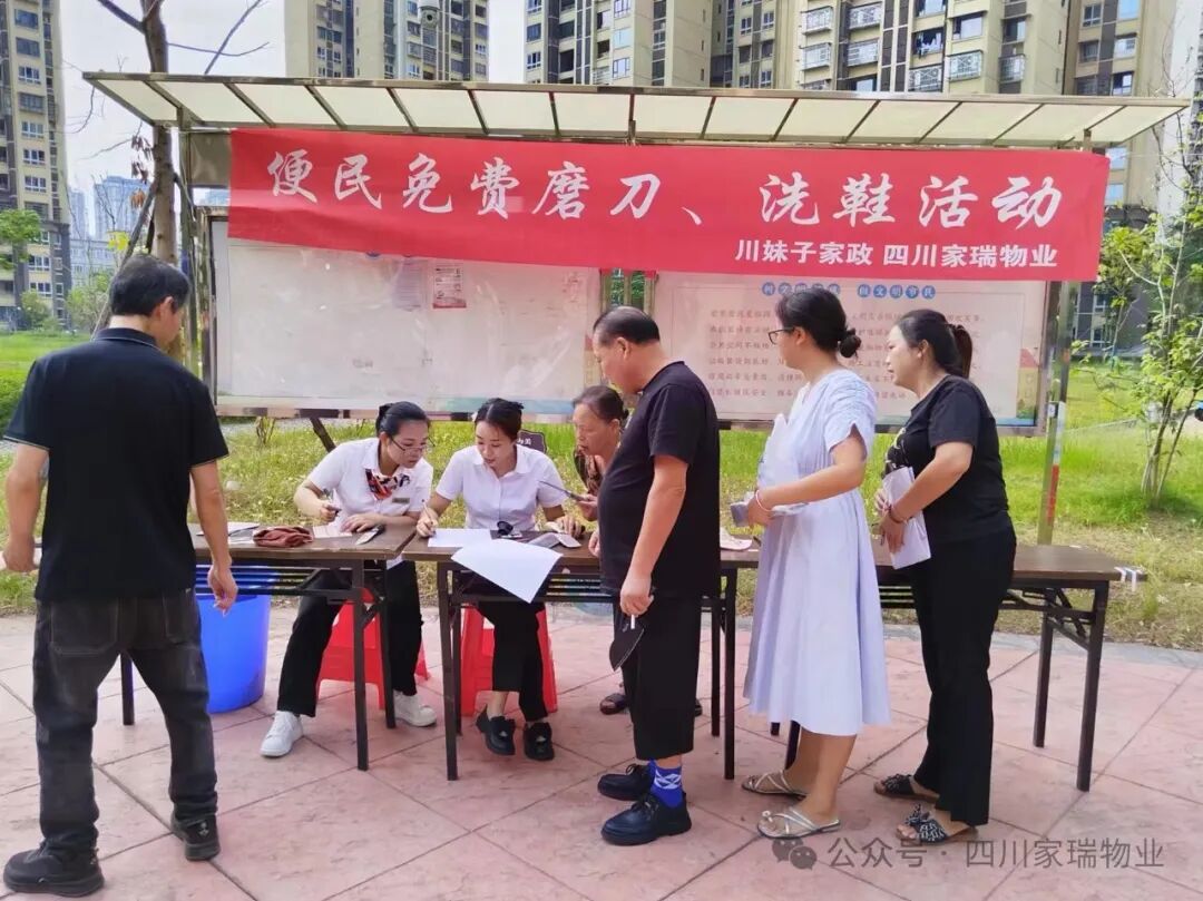 2024 年 9 月 23日,为提升小区业主的生活便利性和幸福感,四川家瑞物业携手川妹子家政公司在家瑞物业所服务的小区开展免费磨刀和洗鞋活动。