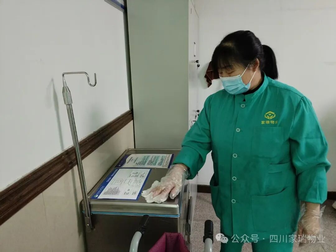 在公司所服务岳池县人民医院项目,每一位家瑞物业人,都用实际行动诠释了责任与担当。在这繁星点点的夜空中,有两颗星星特别耀眼。她们分别是门诊二楼保洁员丁云花、肿瘤科保洁员唐小琼。她们以出色的工作表现,赢得了科室护士长、科室主任的一致赞誉,成为了保洁岗位上的一面旗帜。她们自加入职以来,始终坚守岗位,用勤劳的双手和高度的责任心,为患者和医护人员营造了整洁、舒适的就医环境。